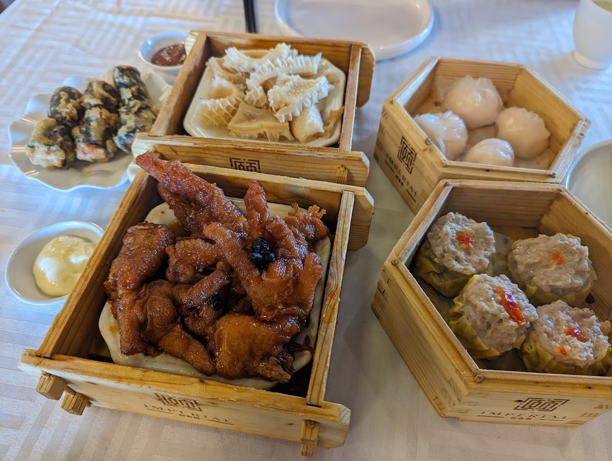 The menu highlights a mix of traditional Cantonese dishes and dim sum favorites served fresh and hot. Signature plates like the Imperial Double Boiled Salted Range Chicken and Cantonese-style crispy noodles stand out for those seeking familiar flavors with a bit of refinement. If dim sum is your focus, the restaurant’s offerings range from classic dumplings like Xiaolong Bao to more unique items such as peanut butter dumplings and assorted BBQ platters. The dim sum window from late morning to mid-afternoon brings a bustling mid-day crowd, making it an active spot for weekend brunch or casual lunch outings.